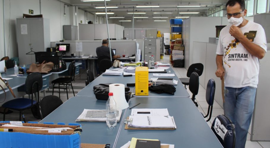 O vice-presidente do Sindicato dos Trabalhadores Municipais de Divinópolis e Região Centro-Oeste (Sintram), Wellington Silva, está preparando o relatório a ser encaminhado ao Ministério Público do Trabalho sobre as medidas de segurança contra a covid-19 adotadas pela Prefeitura de Divinópolis. Na sexta-feira (12), um dia antes de o prefeito Gleidson Azevedo (PSC) reunir prefeitos da região e declarar a onda roxa para o município, o vice-presidente do Sindicato fez uma vistoria em todos os andares do Centro Administrativo.